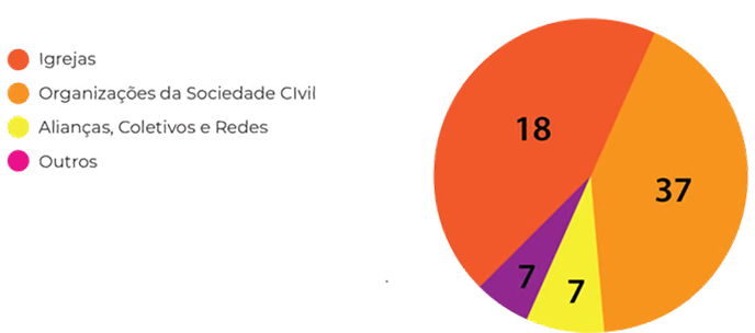 Frente ao ano anterior, temos uma modificação de gráfico, dos que deixaram de atuar na temática a maior parte são igrejas (11), seguido por 3 Organizações e 1 Coletivo.