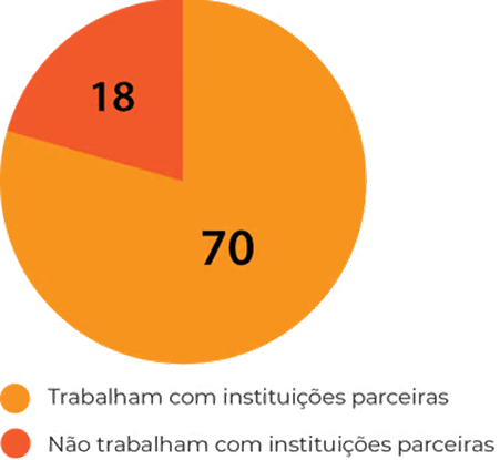 A atuação em rede segue sendo uma força, pois a maior parte das igrejas e organizações cristãs evangélicas respondentes declarou trabalhar com outras instituições parceiras para oferecer serviços e assistências à população refugiada ou migrante. 18 instituições, no entanto, não trabalham em parceria com outras instituições.