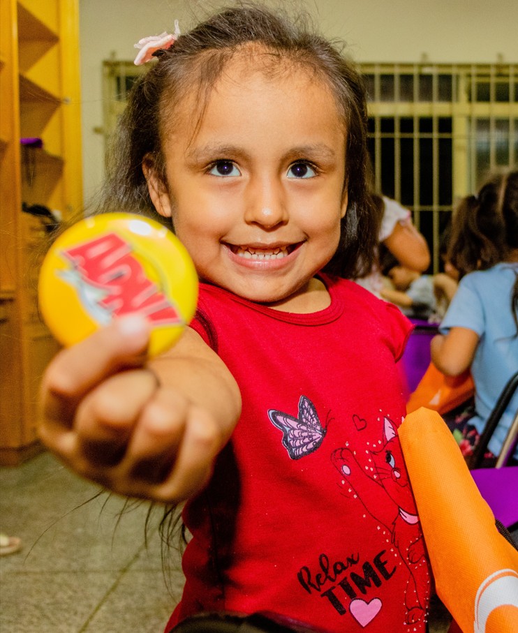 Realização de oficinas, rodas de conversa e atividades educativas para famílias, com o uso de materiais lúdicos como “Pipo e Fifi” e “Aprendendo a Dizer Não”.